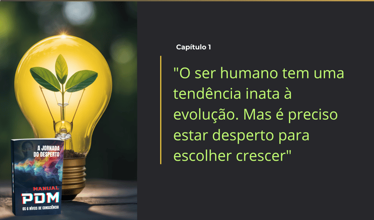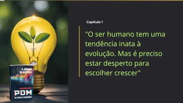 O Manual PDM Não é apenas um e-book, é o guia que vai te tomar pela mão e te conduzir desde a saída da ESTAGNAÇÃO e VAZIO EXITENCIAL até a sua AUTORREALIZAÇÃO CONSCIENTE. De forma suave, segura e ajustada ao seu ritmo.